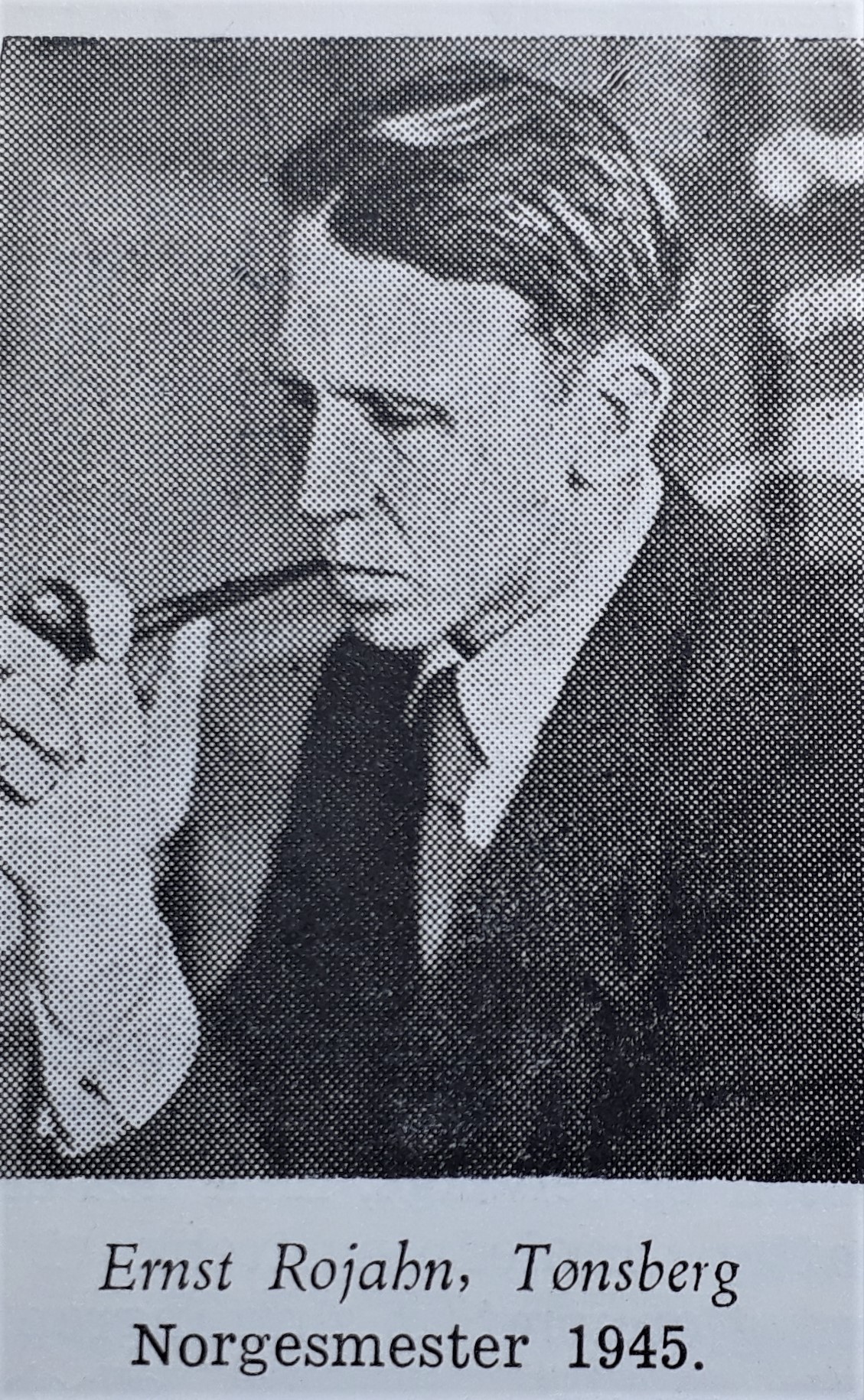 Takket være Bernt Nordby har vi fått tilgang til et aldeles herlig foto av Ernst Rojahn. Kilden er en av bøkene til Sigurd Heiestad. Den har tittelen Sjakk Kavalkade.